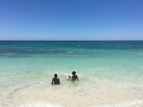 The beach is fairly quiet, especially on weekdays and activities include swimming and beach games.