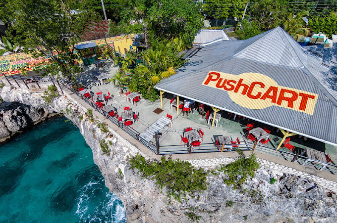 Rustic, open-air dining experience reminiscent of traditional Jamaican street food culture